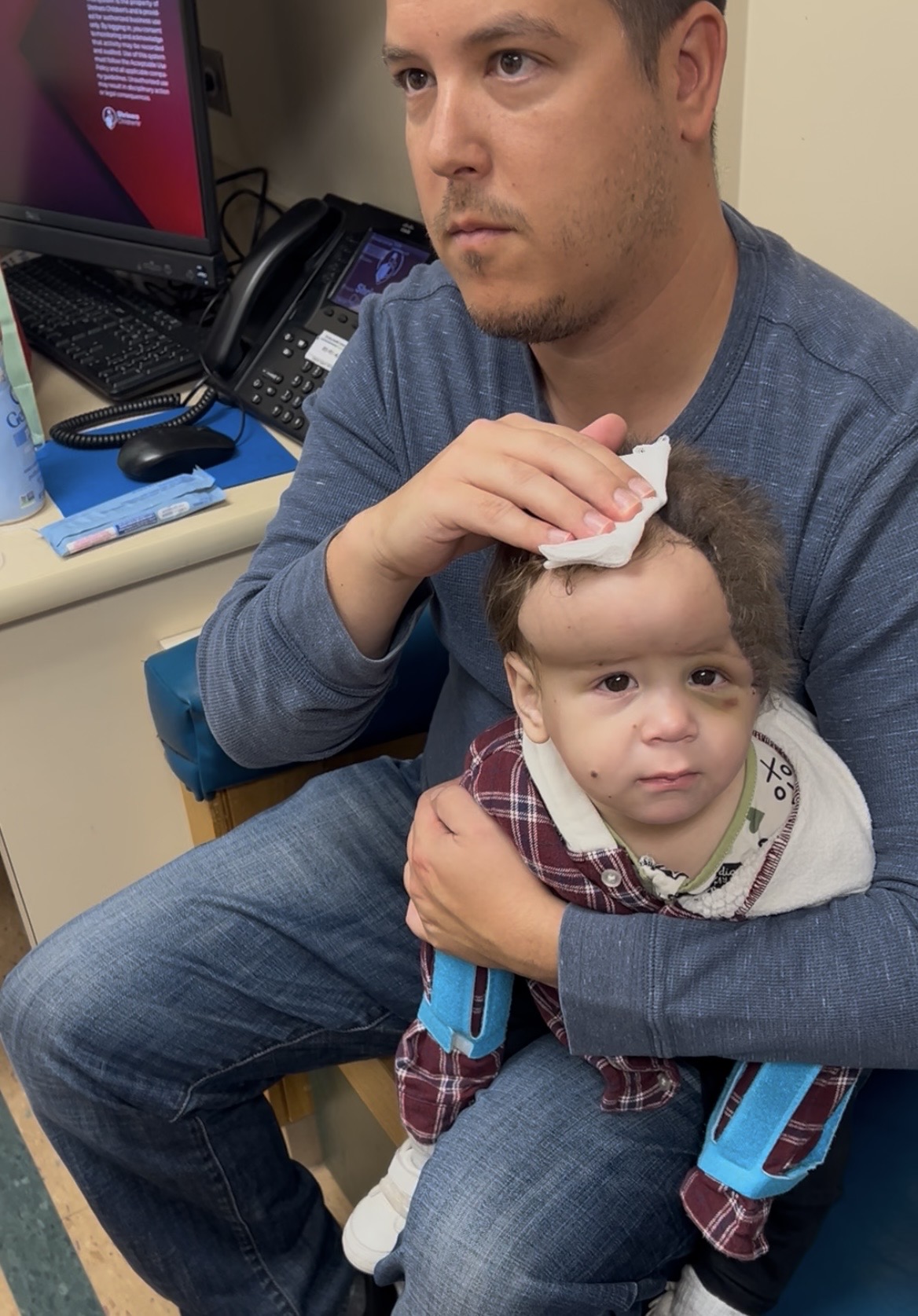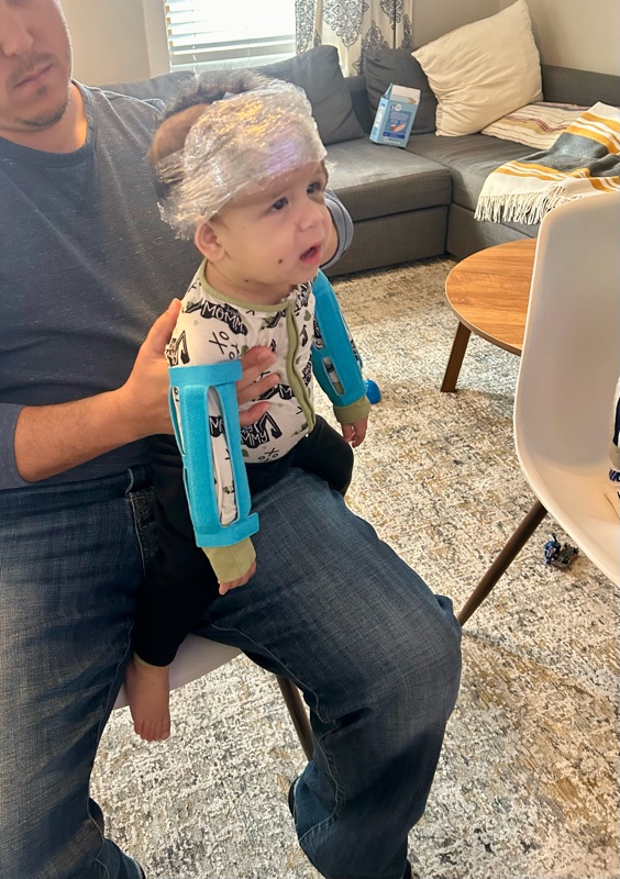 Rocco sat comfortably in Mike’s arms the entire time while another nurse held up Ms. Rachel videos for him and Mikey fed him snacks. It was truly a team effort, and it will probably be a 3–4 person job each week when we get home.